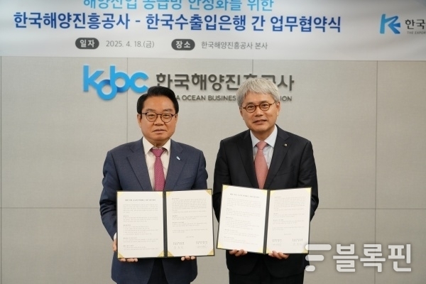 한국수출입은행(은행장 윤희성)은 해양산업 공급망 안정화를 위한 협력 강화를 목적으로 한국해양진흥공사와 업무협약(MOU)을 체결했다고 20일 밝혔습니다.