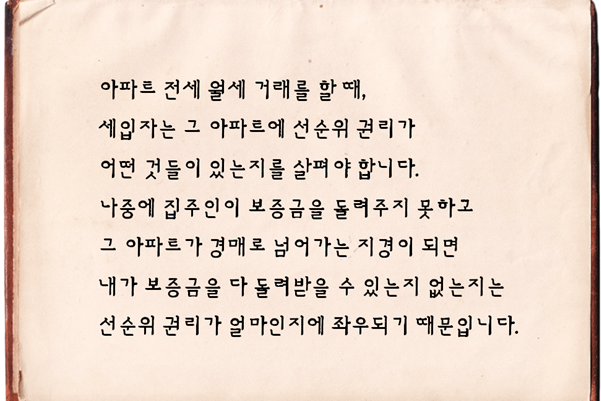아파트 전세나 월세 계약을 체결할 때 세입자가 반드시 확인해야 할 것이 있습니다. 바로 그 집에 선순위 권리가 존재하는지 여부입니다.