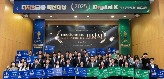NH농협은행(은행장 강태영)은 디지털 혁신 성과를 공유하고 혁신 문화를 조직 전반으로 확산하기 위해 ‘디지털금융 혁신대상’을 개최했다고 26일 밝혔습니다. 농협은행은 올해 진행된 다양한 디지털 과제 가운데 1차 서류 심사와 2차 발표 평가를 거쳐 우수 사례를 선정해 시상했습니다.