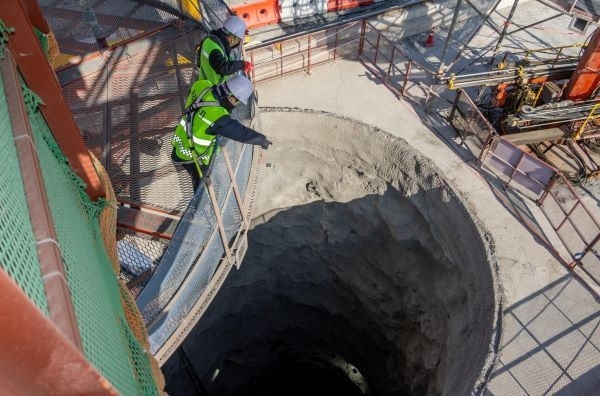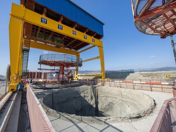 굴착 과정에서 발생한 석재는 수직터널을 통해 즉시 지하로 배출돼 별도의 인양 공정을 생략할 수 있습니다. 이를 통해 추락 사고 위험을 줄이고 공사 기간을 기존 대비 약 30% 단축하는 효과를 거뒀습니다. 이후 회전 천공기를 장착한 갠트리 크레인이 통과하면서 수직터널 지름을 최대 10m까지 확장합니다.