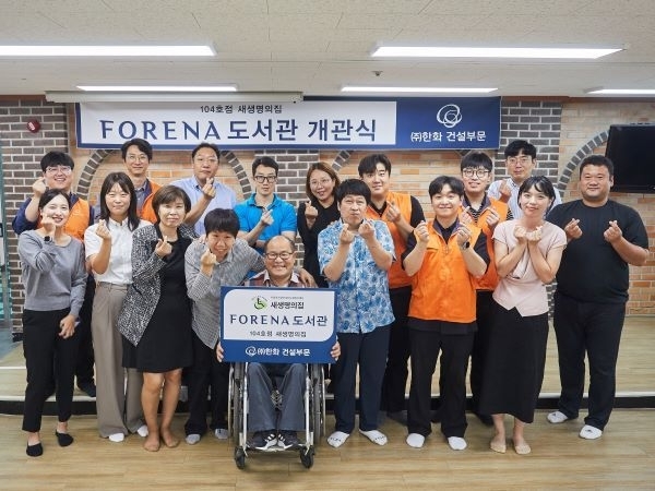 ㈜한화 건설부문(대표이사 김승모)은 25일 경기도 이천시 사회복지시설 새생명의집에서 ‘포레나 도서관 104호점’을 열고 개관식을 가졌다고 26일 밝혔습니다.