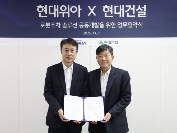 현대건설은 지난 7일 경기도 의왕시에 위치한 현대위아 의왕연구소에서 현대위아와 ‘로봇주차 솔루션 공동개발 및 사업확장’을 위한 업무협약(MOU)을 체결했다고 10일 밝혔습니다. 협약식에는 현대건설 기술연구원 김재영 원장과 현대위아 모빌리티솔루션사업부 백익진 상무 등 양사 주요 관계자가 참석했습니다.