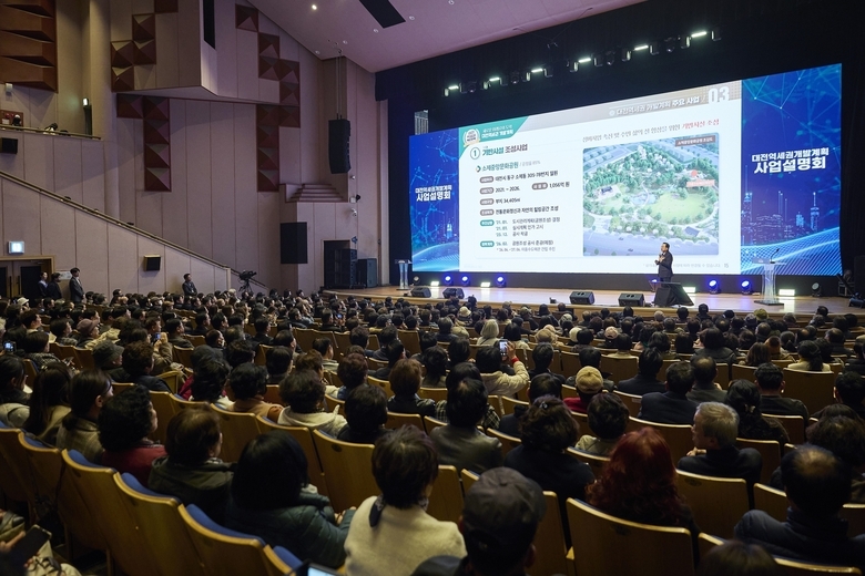 설명회는 우송예술회관에서 개최됐으며 김우석 ㈜한화 건설부문 대표 내정자, 이장우 대전시장, 박희조 동구청장을 비롯한 관계자들이 참석했습니다. 약 1100여 명의 시민이 자리해 개발 필요성과 기대 효과에 대한 높은 관심을 보였고, 시정 브리핑·개발 영상 상영·질의응답 등 시민과의 직접 소통이 중심에 놓였습니다.